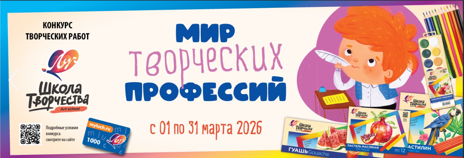 10.09.2025 - 31.03.2026 проводится ежемесячный конкурс "Школа творчества 2025 - 2026".
