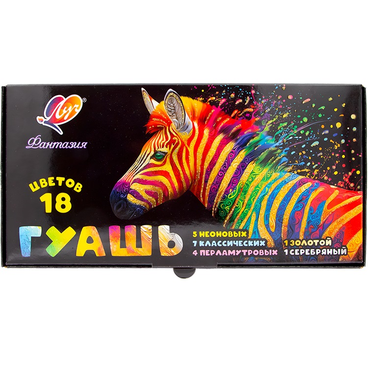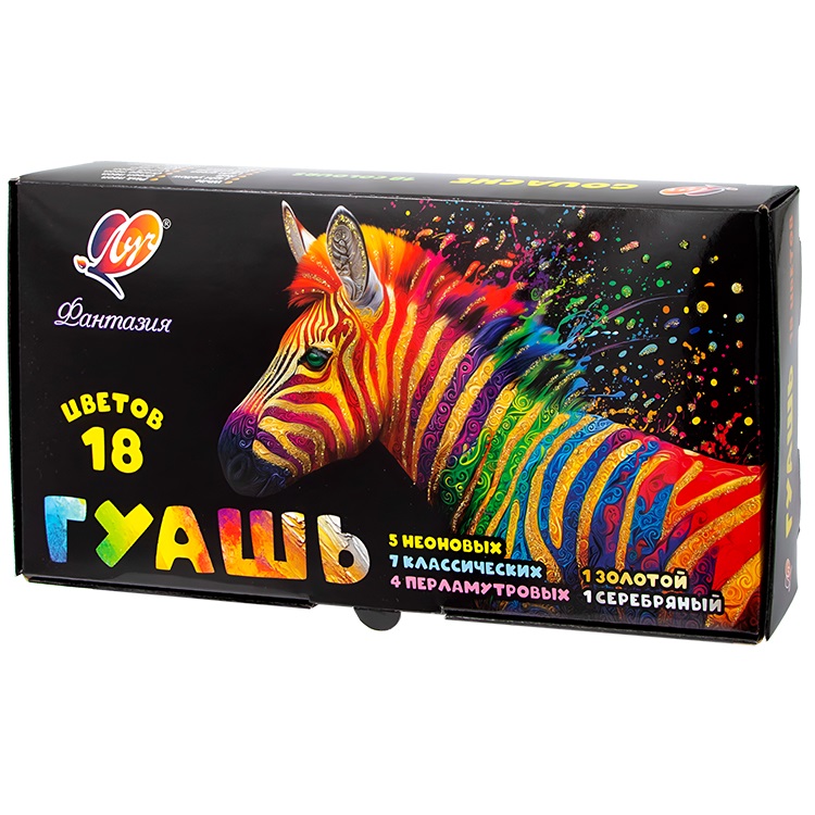 • Специальная палитра: набор из 18 цветов включает 7 классических, 5 неоновых, 4 перламутровых, а также золотой и серебряный.
