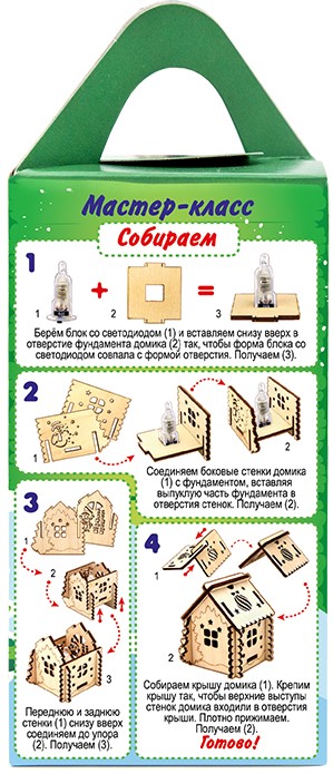 На упаковке подробный мастер-класс по созданию светящегося домика.