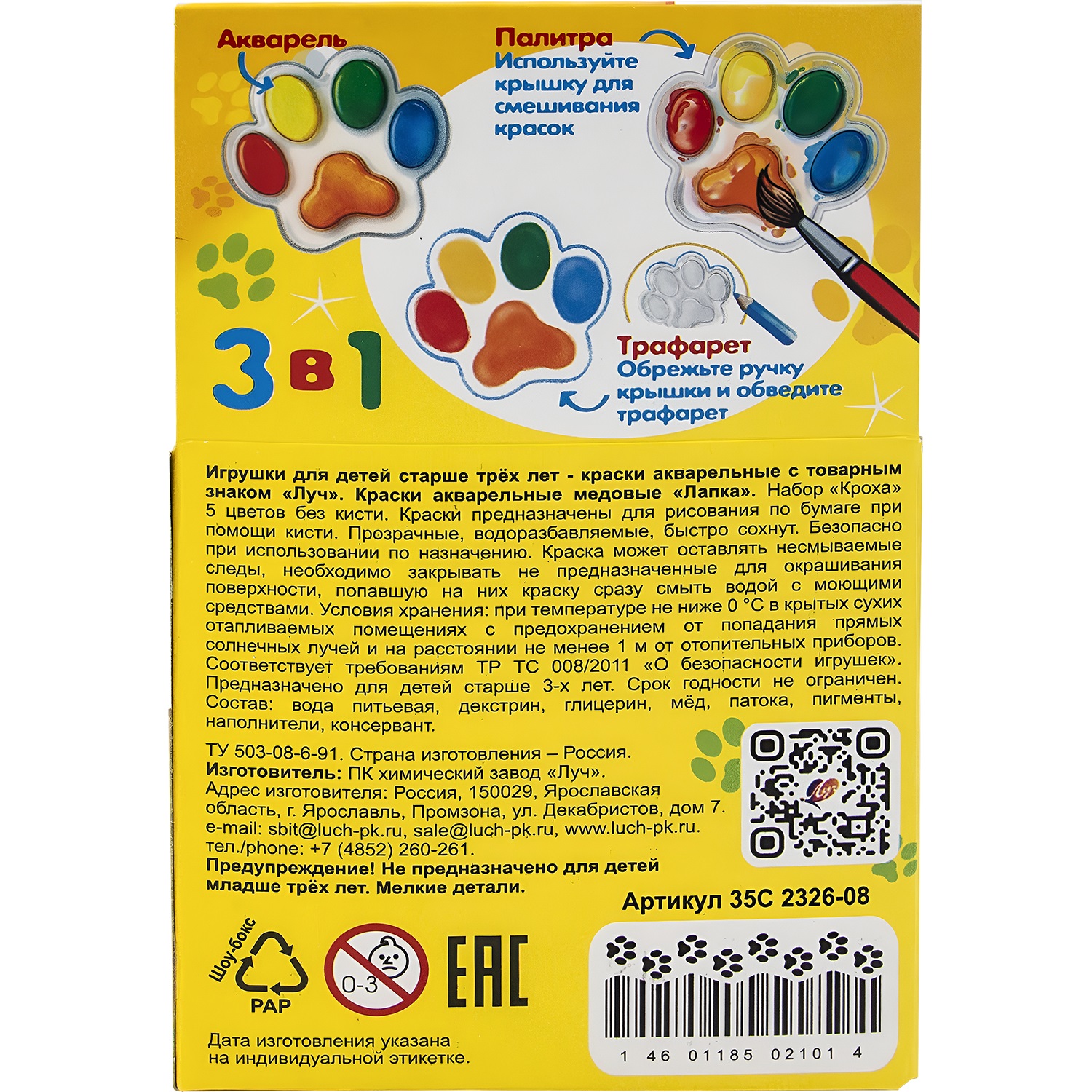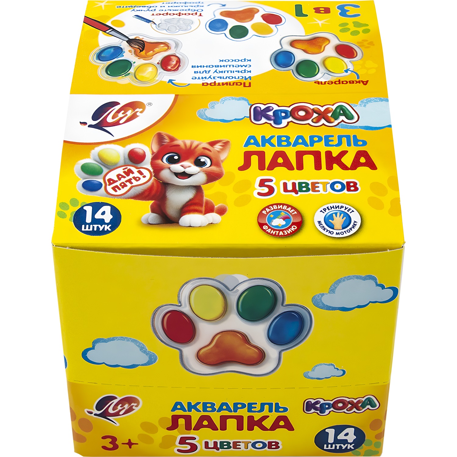 - Фигурное донышко упаковки служит трафаретом для рисования очаровательной лапки, добавляя элемент игры в творческий процесс