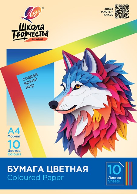 Набор цветной бумаги в папке "Школа творчества" 10 листов, 10 цветов. Цетная бумага - идеально подходит для создания аппликаций и коллажей, для декоративных бумажных украшений и объёманых поделок. Процесс создания поделок из цветной бумаги, развивает у ребенка мелкую моторику, фантазию и пространственное мышление. Большое количество бумаги предоставляет широкое поле для творческих решений. Набор цветной бумаги идеально подойдёт для детского творчества дома, в детском саду, школе, в кружках и на дополнительных занятиях для детей.