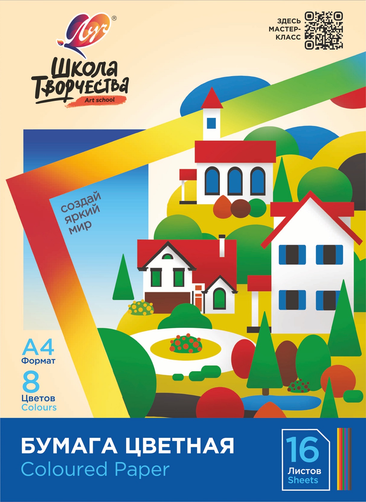 8 цветов 16 листов — качественно прокрашенной офсетной бумаги плотностью 70 г/м2;