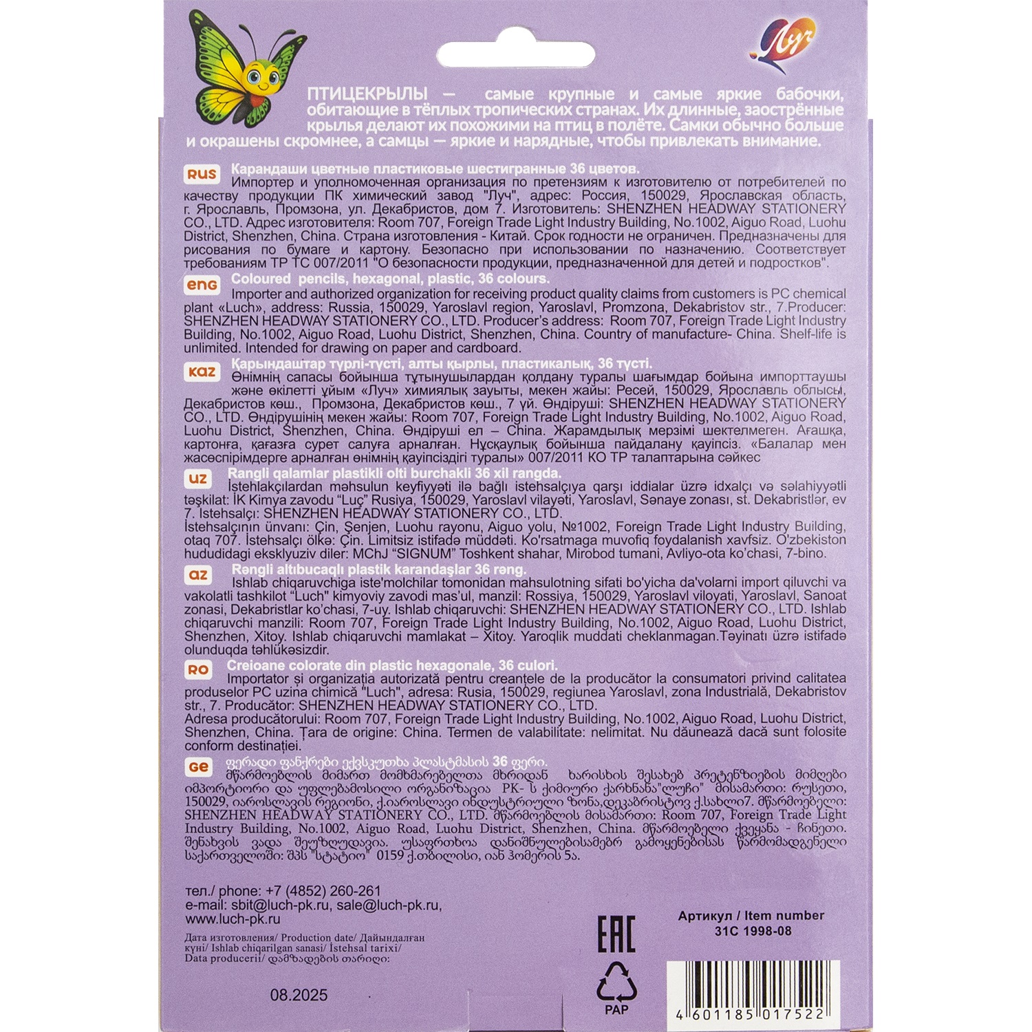 * Корпус карандаша - изготовлен из прочного пластика.