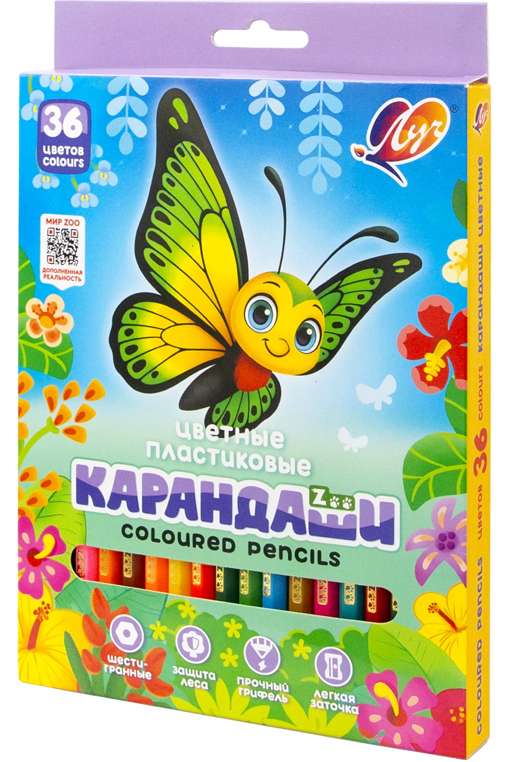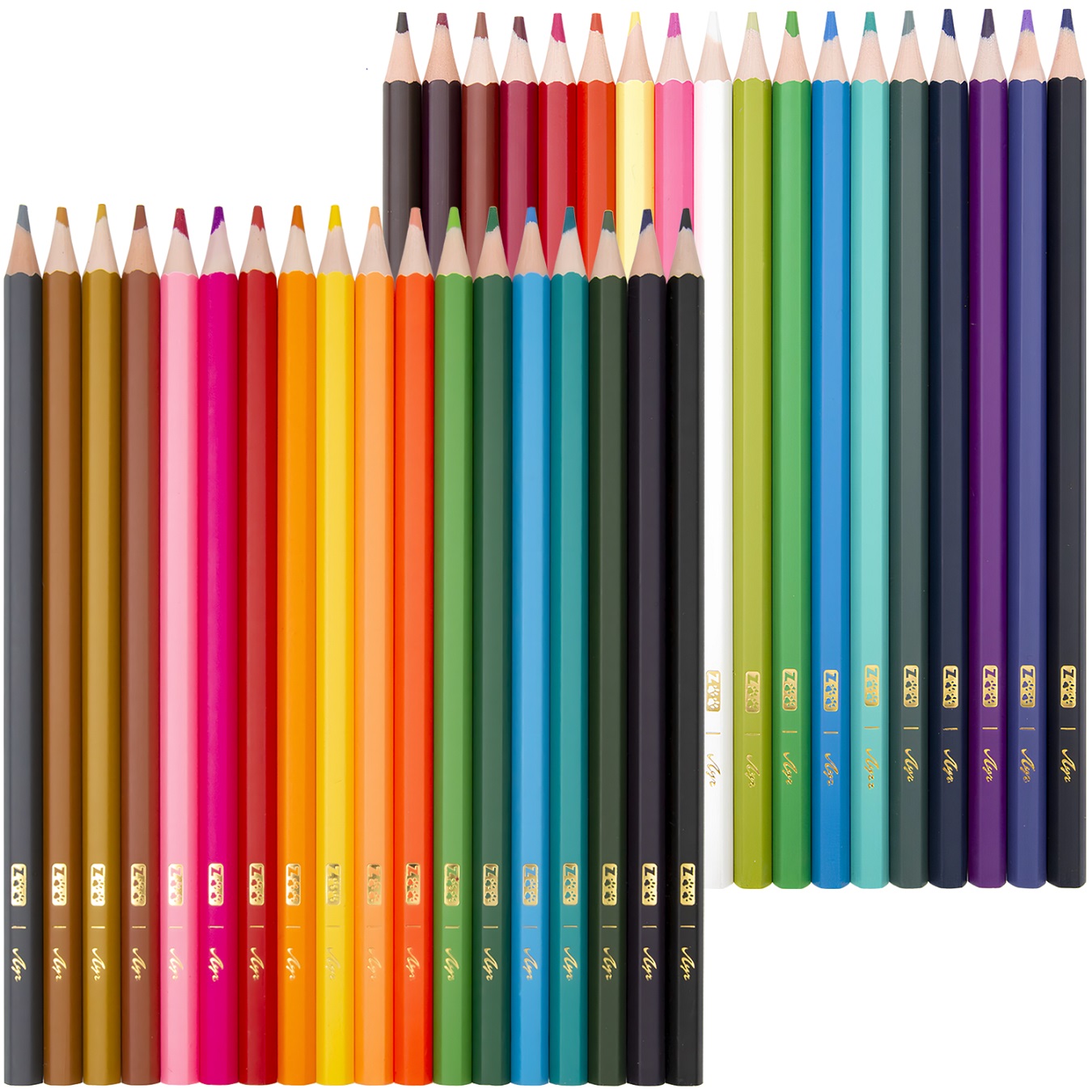 * Состав карандашей в наборе на 36 цветов: чёрный, коричневый, красный, темно-зелёный, синий, жёлтый, оранжевый, розовый, светло-коричневый, зелёный, голубой, тёмно-лиловый, белый, светло-оранжевый, бордовый, холодный розовый, светло-зелёный, глубокий розовый, телесный, оливково-жёлтый, фиолетовый, голубая лагуна, глубокий красный, серый, китайский синий, сапфировый, аквамарин, цвет морской волны, зеленый, бледно-лиловый, насыщенный розовый, изумрудный, темно-красный, красно-коричневый, темно-оранжевый, насыщенный желтый.
