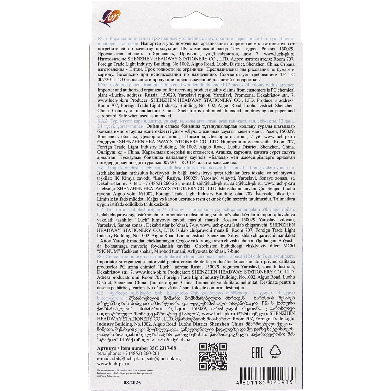 * Корпус карандаша изготовлен из мягкой древесины, карандаши легко затачиваются.