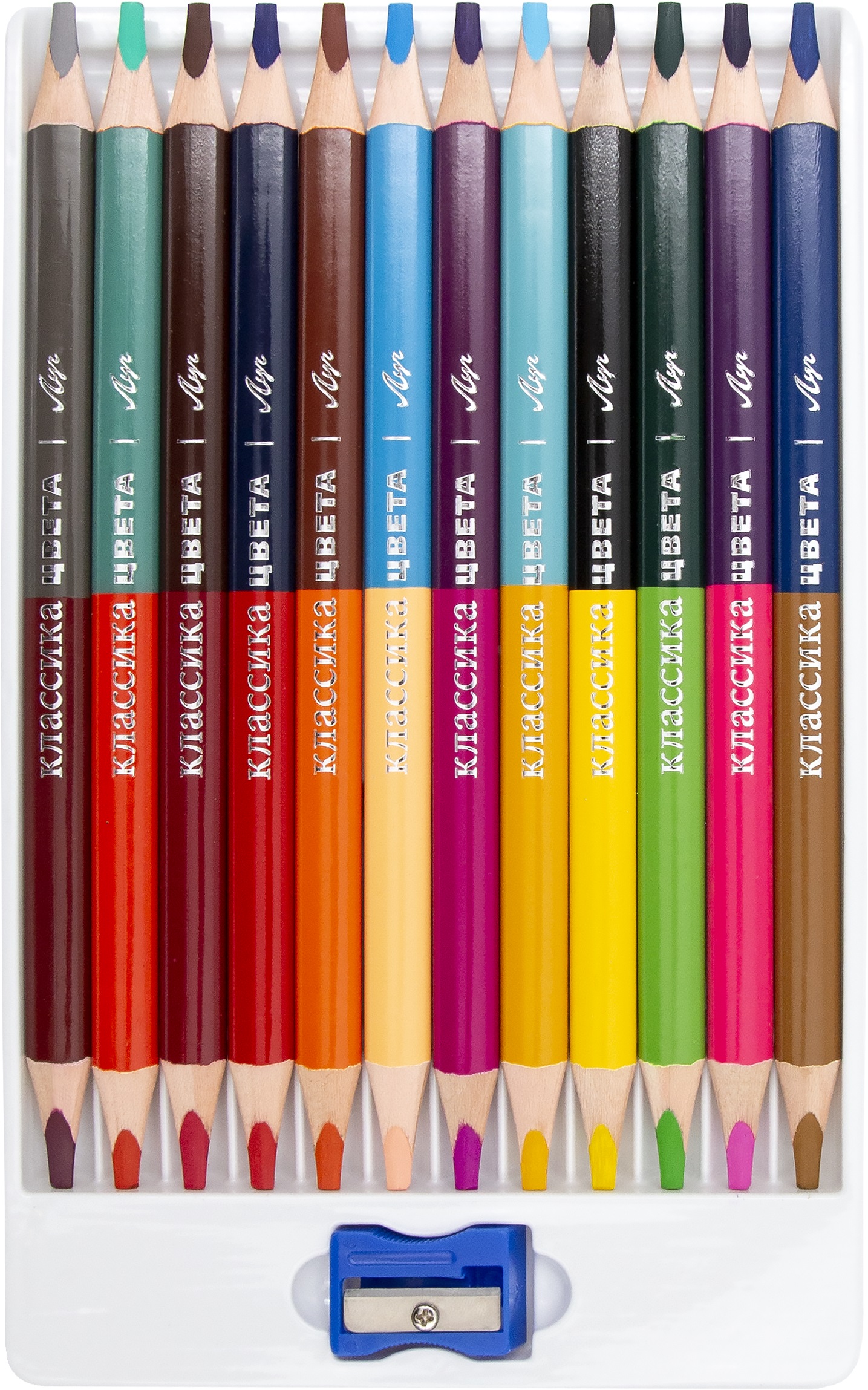 Карандаши деревянные трёхгранные "Классика цвета" с точилкой в комплекте.