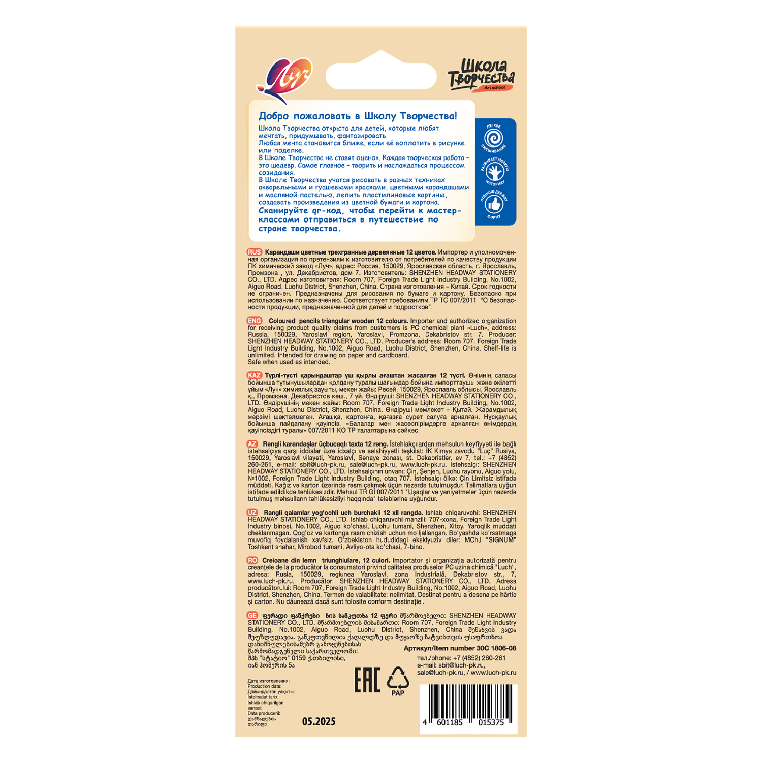 Карандаши трёхгранные «Школа творчества» предназначены для рисования по бумаге и картону, выпускаются в наборах 6, 12 , 18, 24 цвета. Корпус карандаша изготовлен из мягкой древесины. Эргономичная трёхгранная форма снижает усталость и обеспечивает максимальный комфорт при использовании.