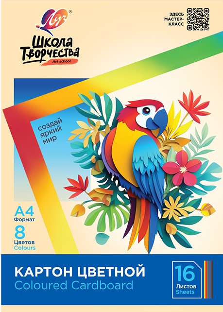 Внутренний блок — 16 листов 8 цветов цветного картона плотностью 220 г/м2;