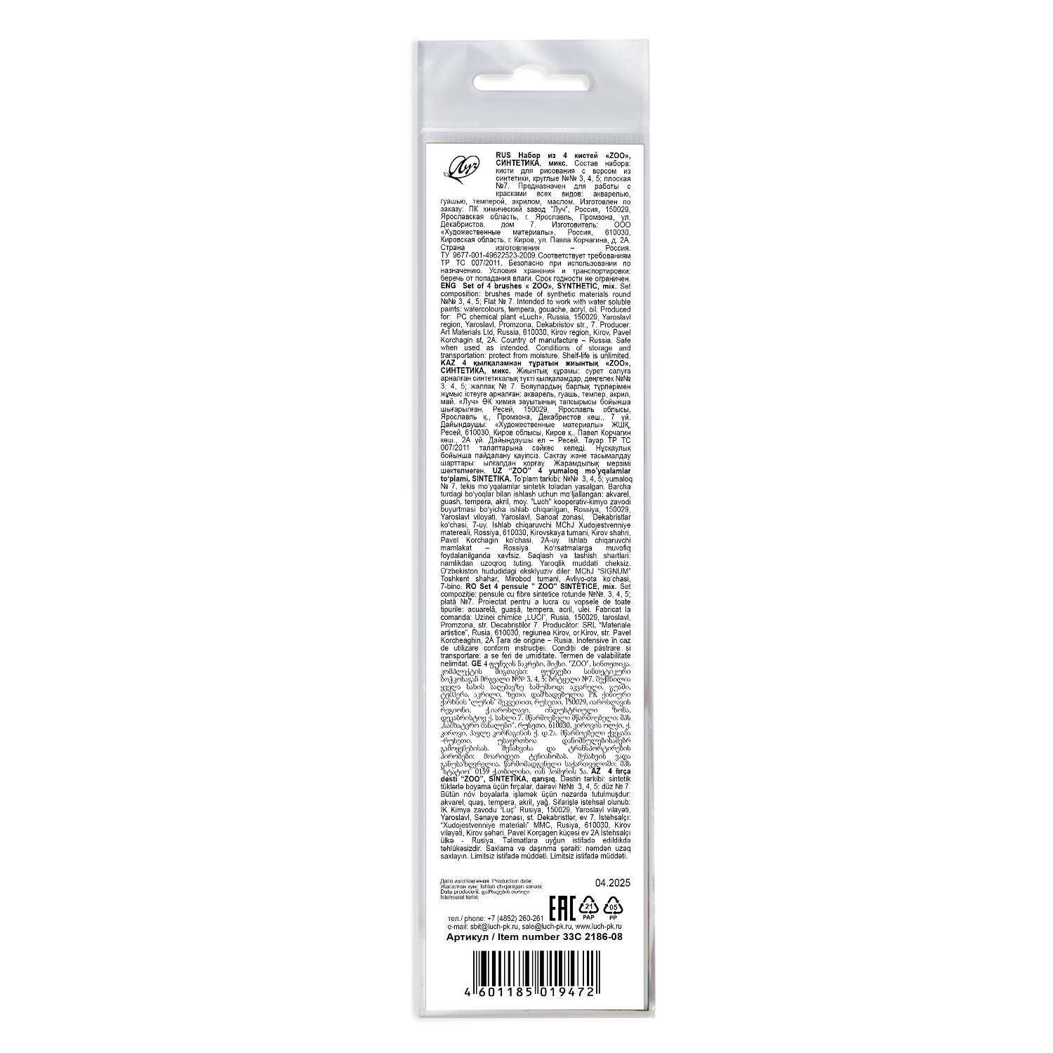 Упаковка: пакет с европодвесом.