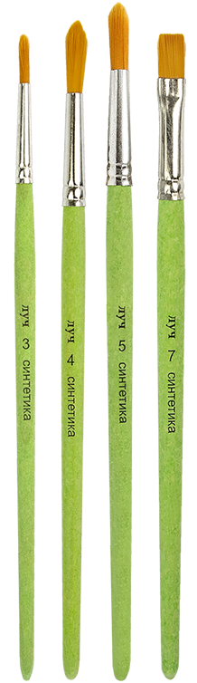 Кисти из рыжей синтетики подойдут для рисования гуашью, акварелью и акрилом. Волокно средней упругости. Форма кисти собирается и выводится вручную. Деревянная ручка тщательно шлифована и пропитана безопасным составом. Кисть удобно и приятно держать в руке. Мазок получается точный и предсказуемый. Такими кистями удобно рисовать ровные и четкие линии, ставить четкие точки и штрихи. Кисти предназначены для широкого круга потребителей.