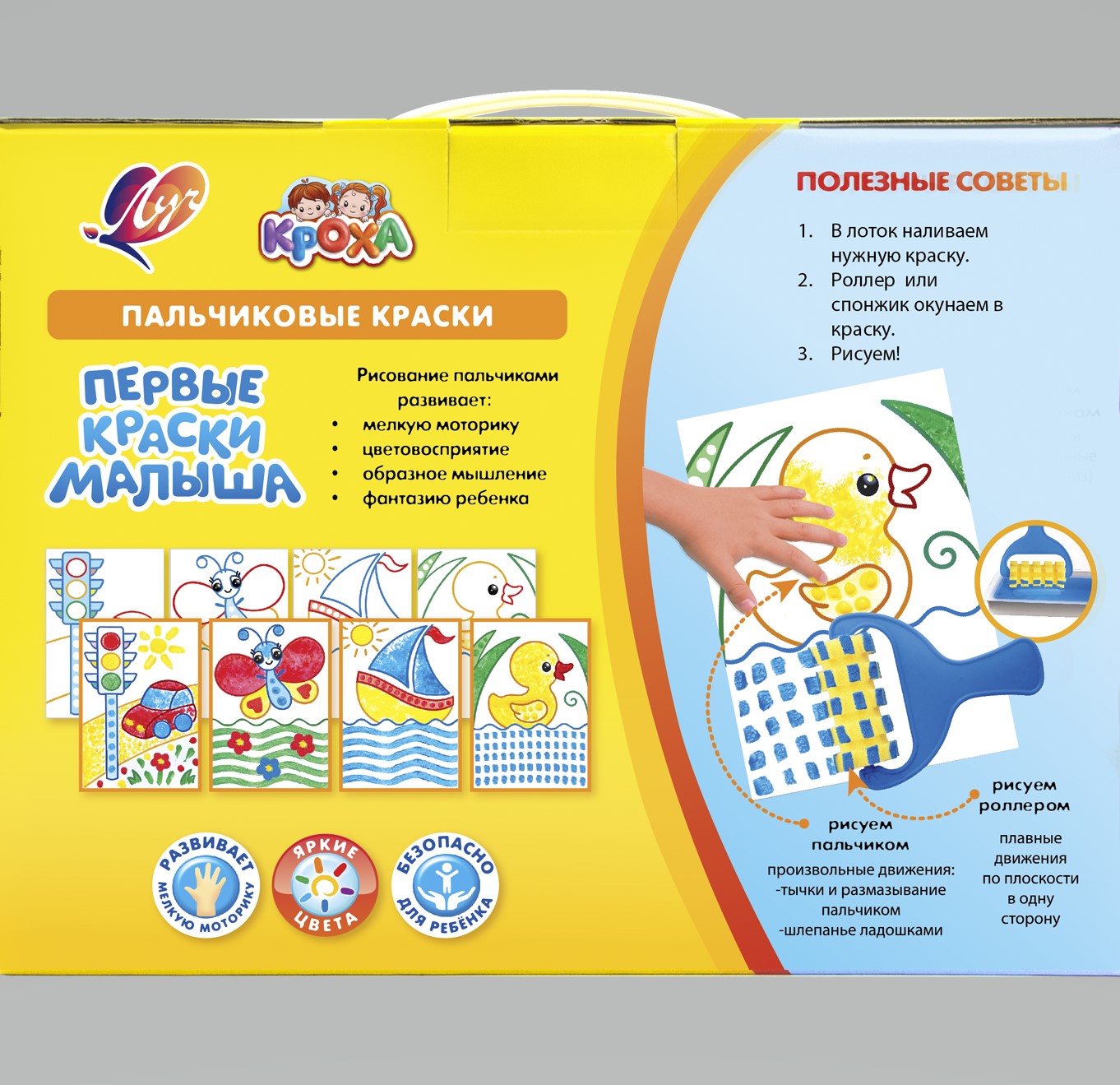 Набор пальчиковых красок "Кроха" 4 цв. с аксессуарами "Первые краски малыша"