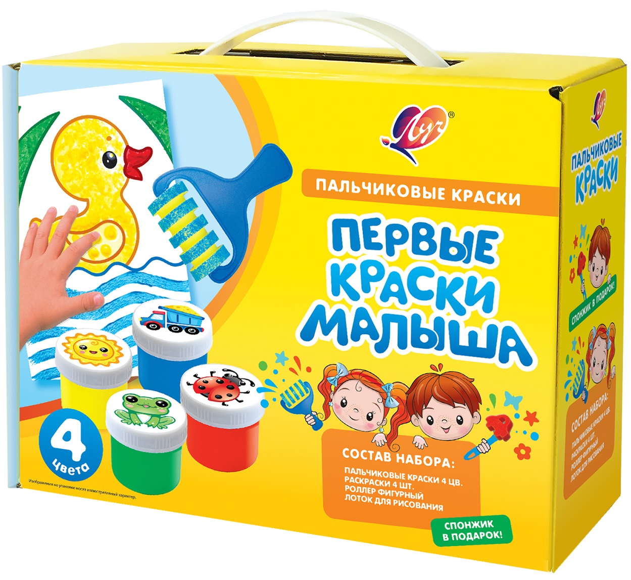 Набор пальчиковых красок "Кроха" 4 цв. с аксессуарами "Первые краски малыша" - это замечательный вариант подарка для малыша, которые только начинают знакомиться с увлекательным творческим процессом рисования красками.