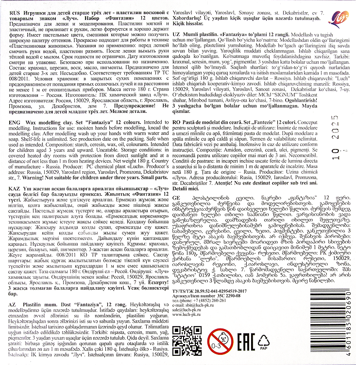 Пластилин восковой "Фантазия" предназначен для широкого круга покупателей самого разного возраста. Пластилин данной линейки, благодаря специально разработанной рецептуре, отличается от классического пластилина мягкостью и эластичностью.