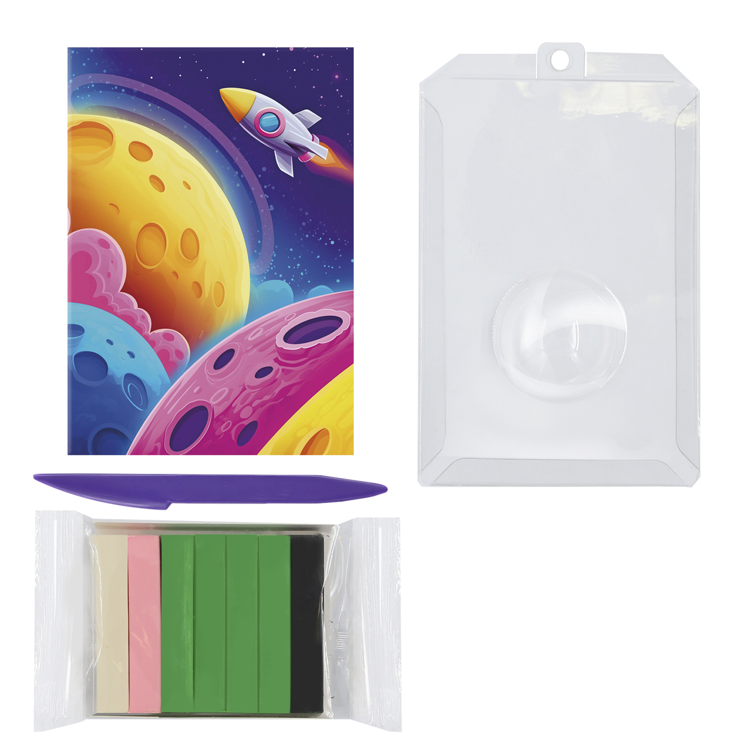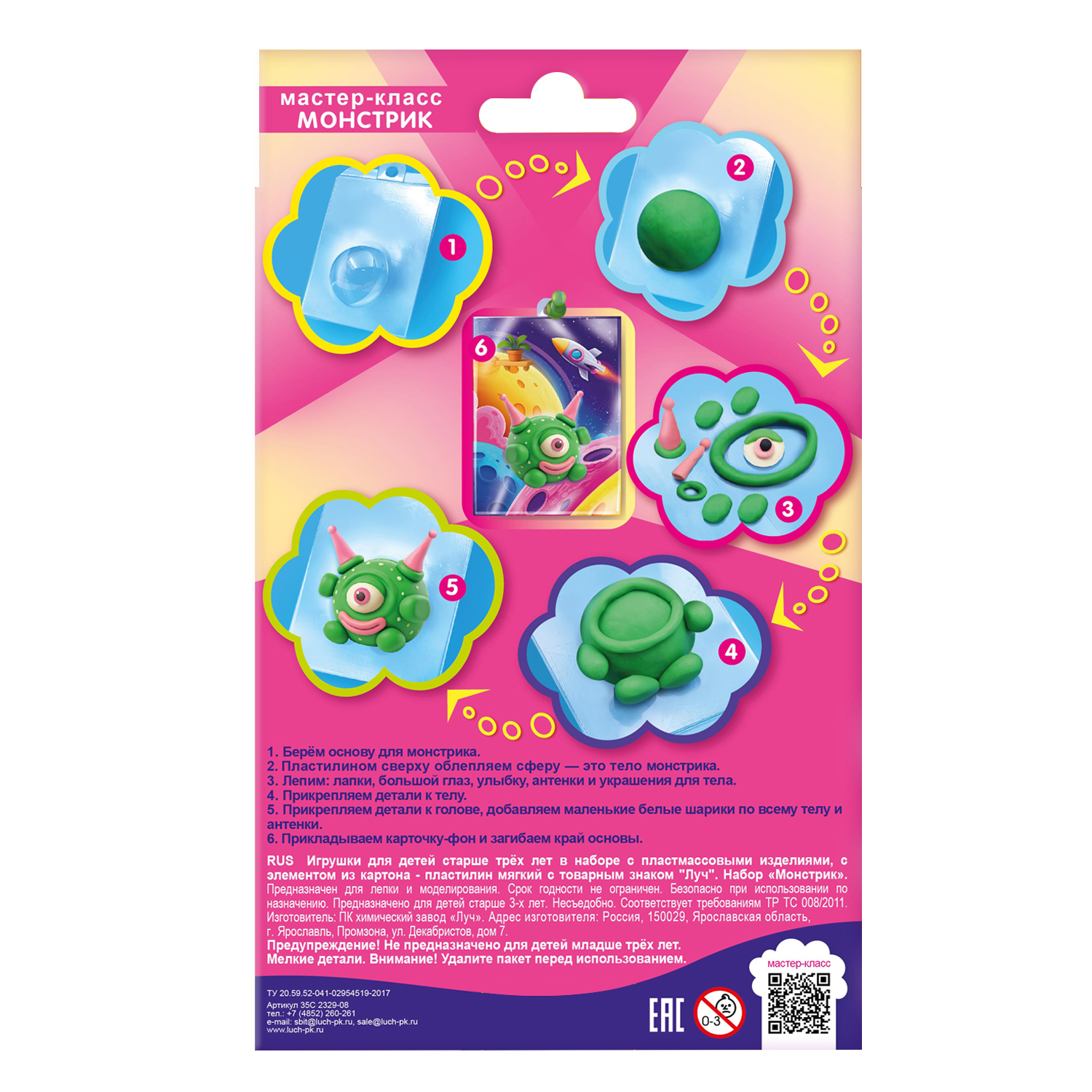 - Мягкий восковой пластилин 7 брусков: белый, черный, фиолетовый светлый и 4 зелёных светлых брусочка для создания симпатичного монстрика.