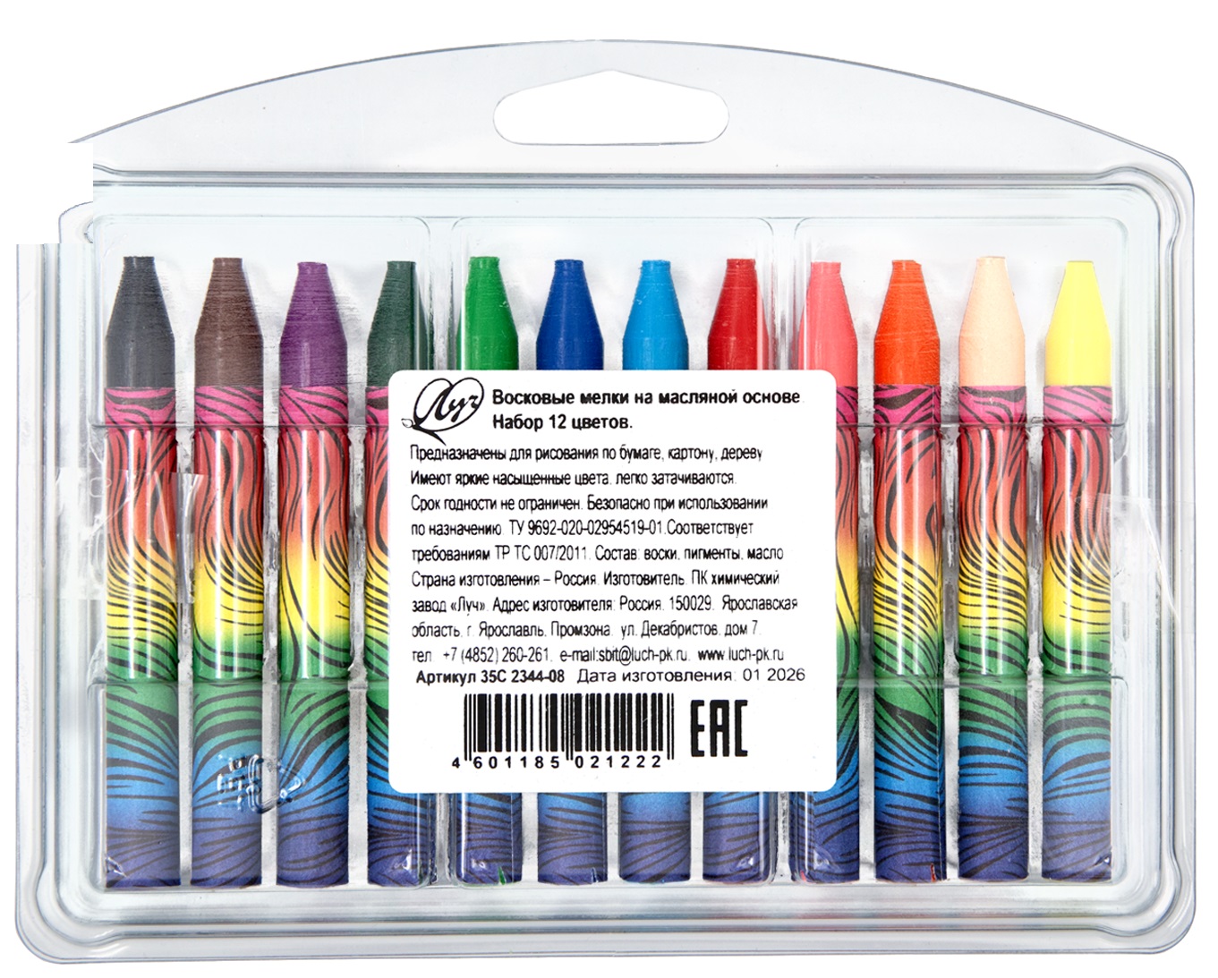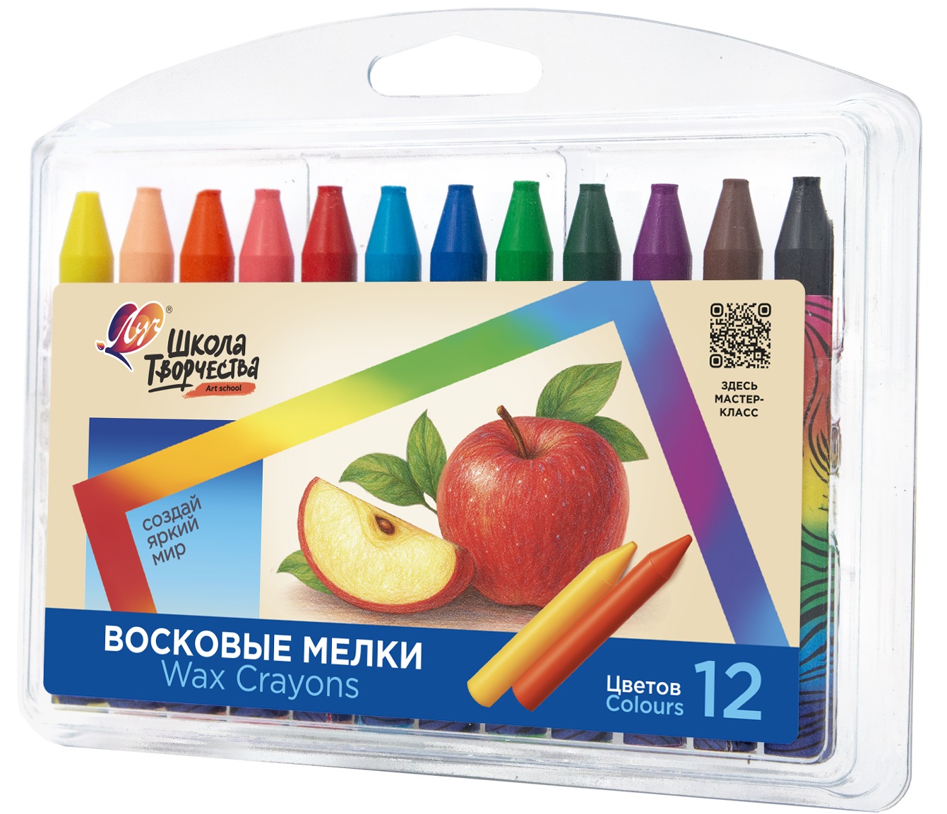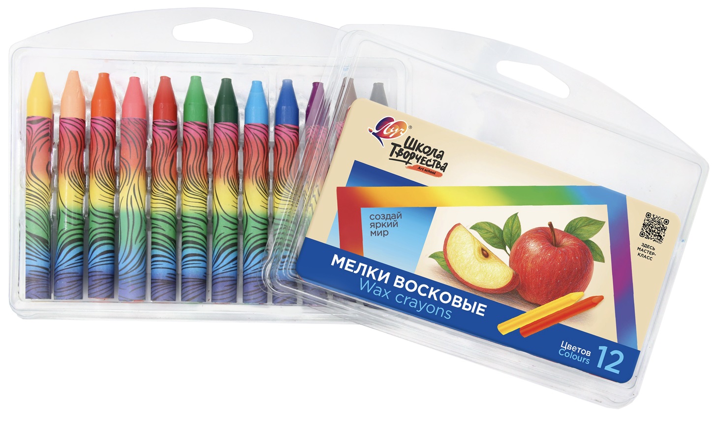 Комплектация: 12 восковых мелков в пластиковой упаковке