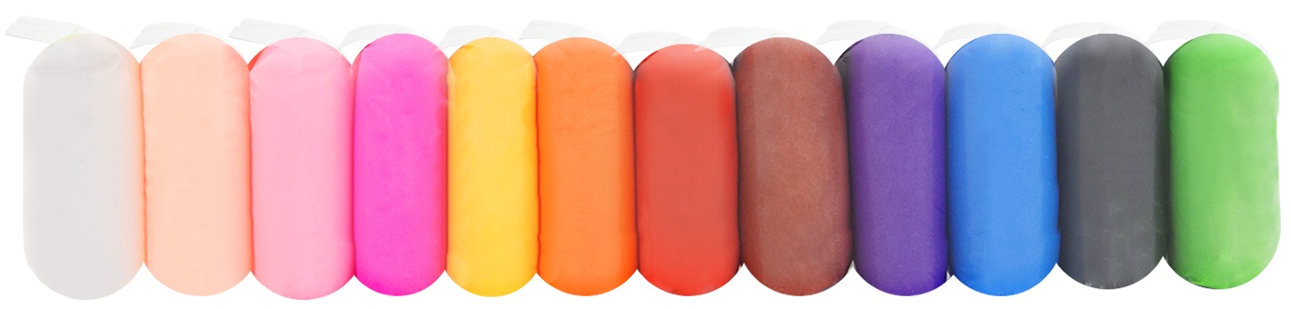 В наборе 12 цветов: белый, светло-персиковый, светло-розовый, ярко-розовый, жёлтый, оранжевый, красный, коричневый, фиолетовый, синий, чёрный, зелёный-травяной.