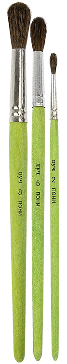 Кисти из волоса пони - самый распространенный вариант для творческих занятий с детьми. Они отлично подойдут для рисования акварелью и гуашью. Мягкий, но плотный волос хорошо впитывает краску и равномерно её отдаёт. Кисти с волосом пони помогут равномерно заполнить фон, нарисовать прямые линии и сделать плавные переходы от тонкой линии и широкой.