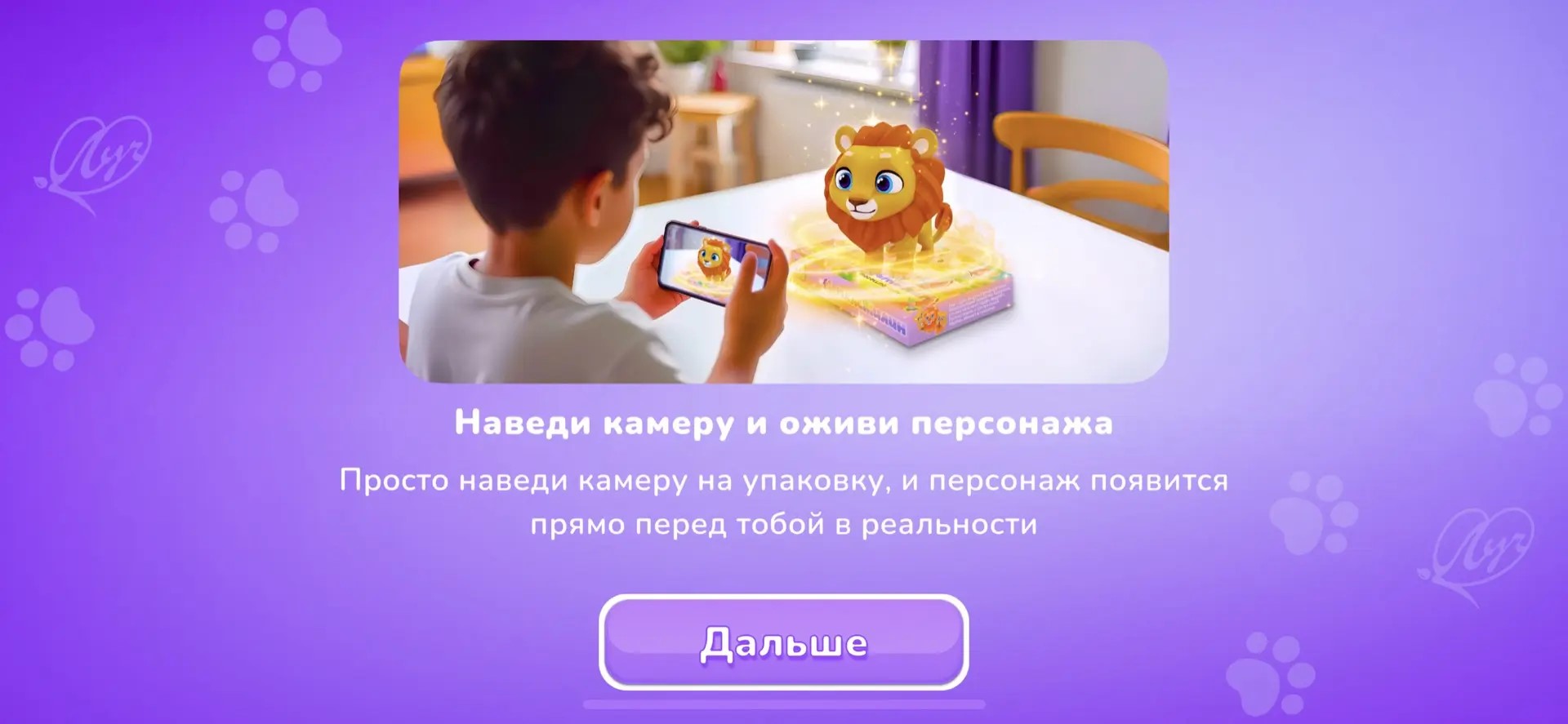 - Нажмите «Сканировать» и наведите камеру на изображение животного на упаковке. Персонаж оживет в режиме дополненной реальности.