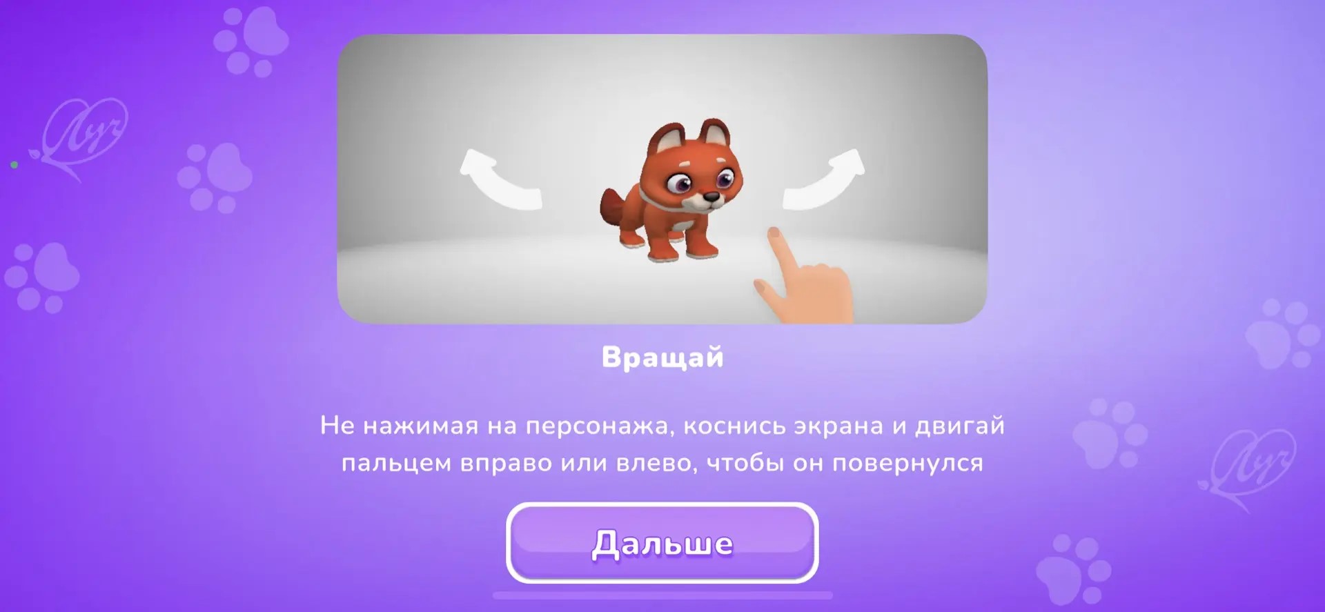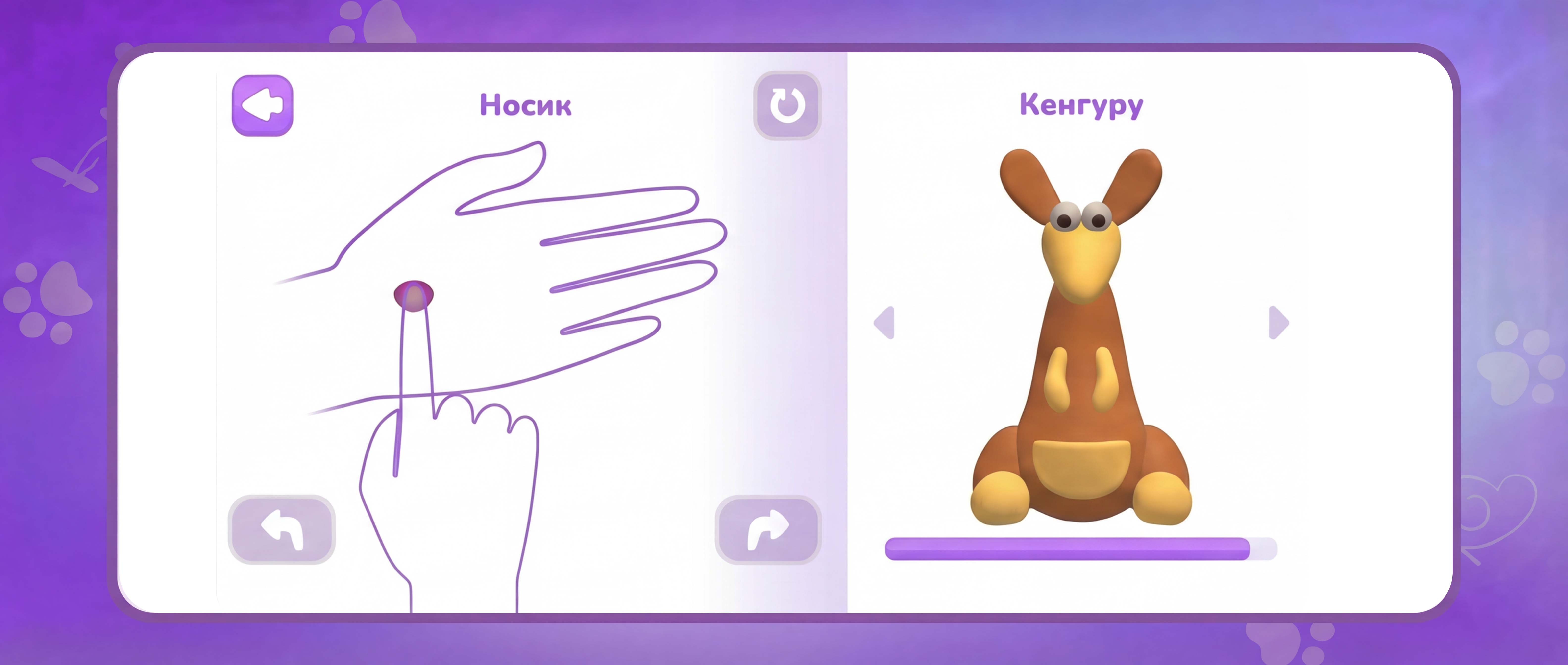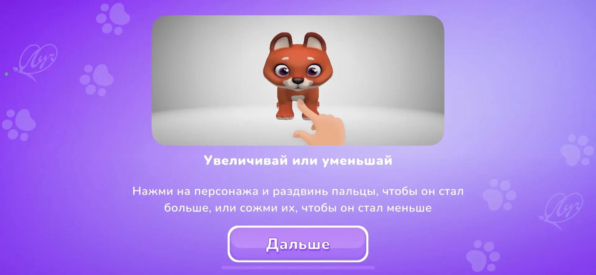 Режим «В телефоне»: персонаж появляется на экране без привязки к упаковке. На экране доступны интерактивные кнопки, управляющие действиями героя: нажмите на одну — и животное расскажет о себе, на другую — издаст забавный звук, на третью — выполнит забавное движение. Персонажа можно поворачивать, рассматривать со всех сторон и фотографировать.