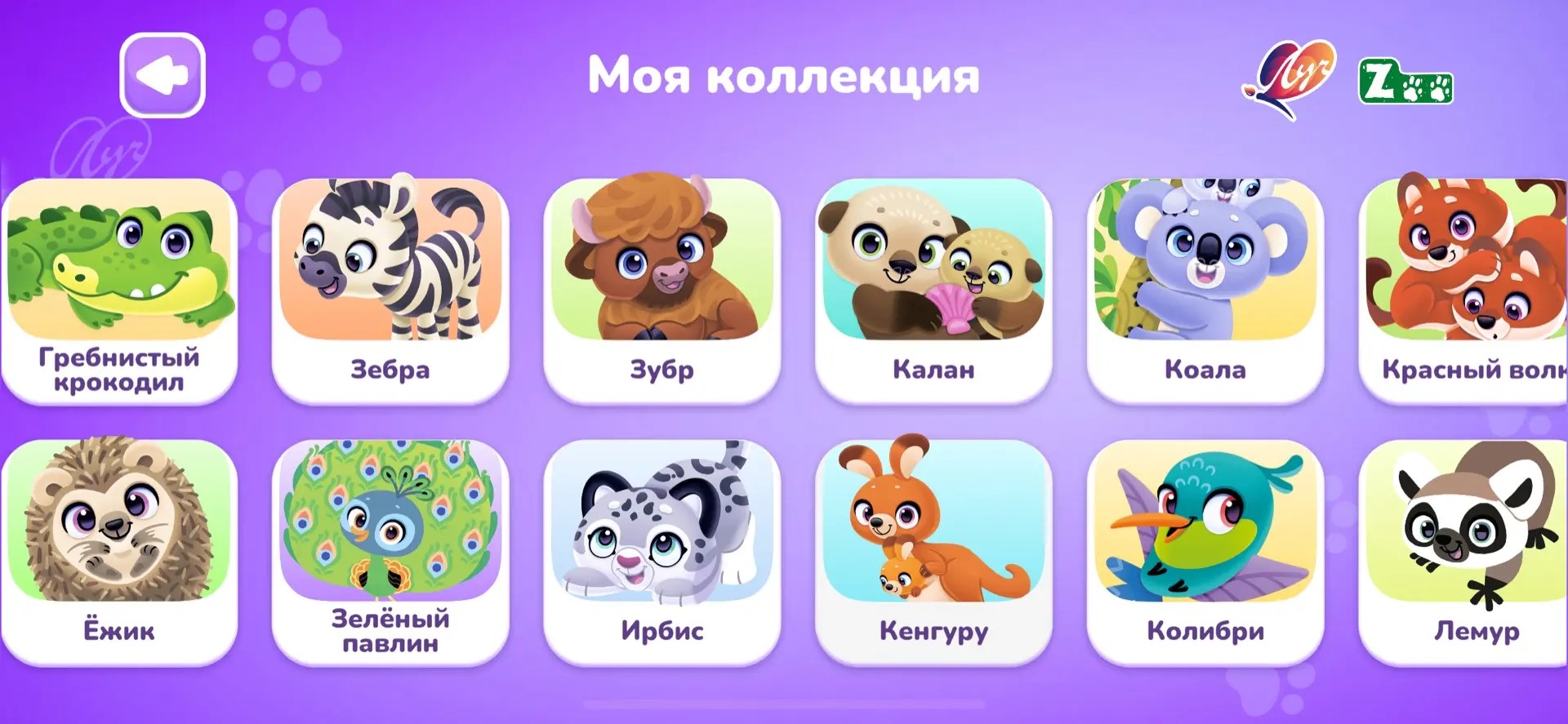 Чтобы вернуться к уже активированным персонажам, нажмите «Моя коллекция». Здесь собраны все животные, которые были добавлены.